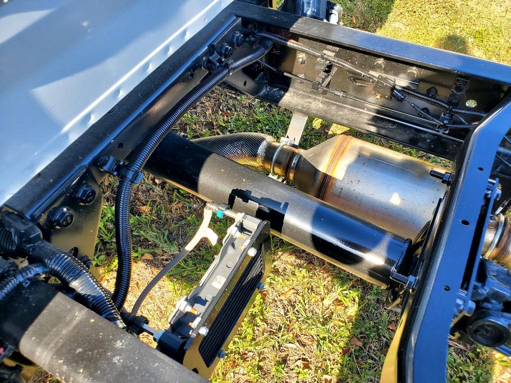 - Exhaust system, right side exit, behind rear wheels (Requires (ED9) 165" wheelbase.)