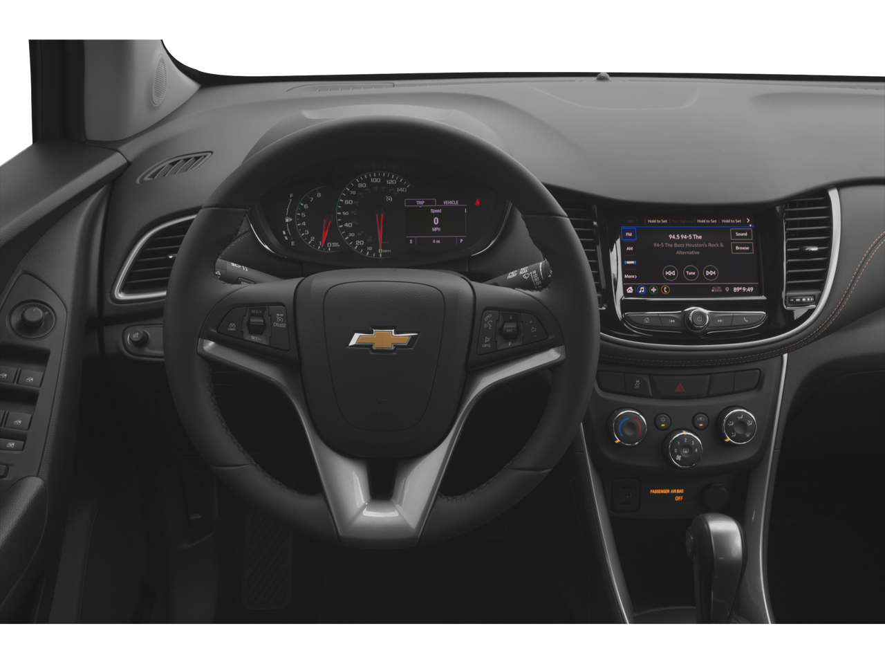 Stepping inside, you'll be greeted by the Trax's well-appointed interior, featuring premium Deluxe Cloth/Leatherette seat trim, a leather-wrapped steering wheel, and a host of convenient technology. The Chevrolet Infotainment 3 system with Apple CarPlay and Android Auto integration keeps you connected and entertained, while the 6-speaker audio system provides exceptional sound quality.