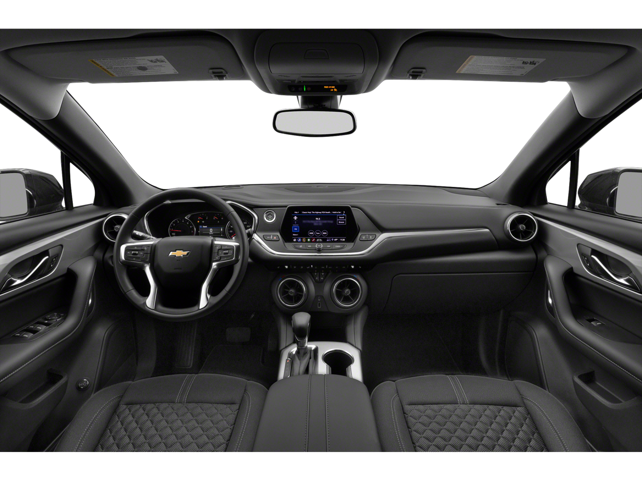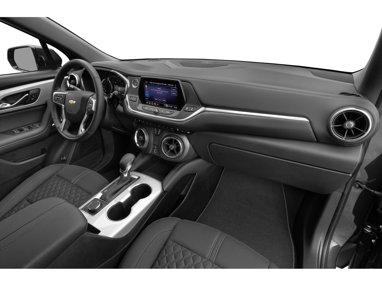 Standout features include remote start, universal home remote, heated power-adjustable body-color mirrors, a power programmable liftgate, auto-dimming rearview mirror, lane change alert with side blind zone alert, rear cross-traffic alert, rear park assist, and heated front seats. The Blazer also boasts black roof rails, adding a touch of rugged style.