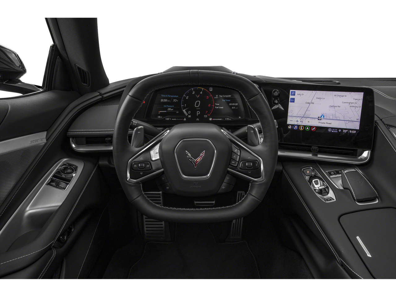 Comfort and convenience are also top priorities, with features like dual-zone automatic climate control, heated and ventilated seats, and a heated steering wheel. The Corvette's advanced safety technologies, including Rear Cross Traffic Alert and Side Blind Zone Alert, provide added peace of mind on the road.