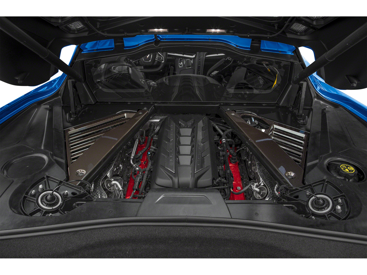 The Corvette's sleek and aerodynamic design is further enhanced by the body-color removable roof panel, which can be stored in the included roof panel storage pouch. The visible carbon fiber roof panel adds a touch of exclusivity and sophistication to this already stunning sports car.